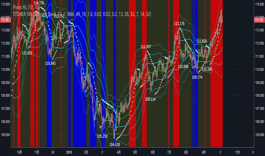 Draw the trend judgment on the chart by combining the "Triple Smoothed ADX", "Triple Standard Deviation" and "Bollinger Band".