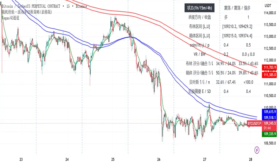This indicator is built on statistical and volatility analysis methods, combining multi-timeframe market data (15m / 1h / 4h) to construct a framework for switching between “trend” and “range” states.