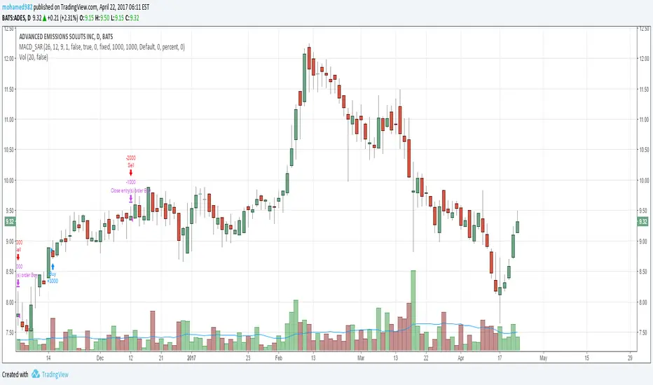 ParSar and MACD strategy depends on the crosses of PARSAR indicator above/below the closing price and is filtered by the MACD indicator. it yields good profits on stocks. however, it doesn't work very well for Forex if you want to use it on forex please apply it to higher time frame starting from 4H.