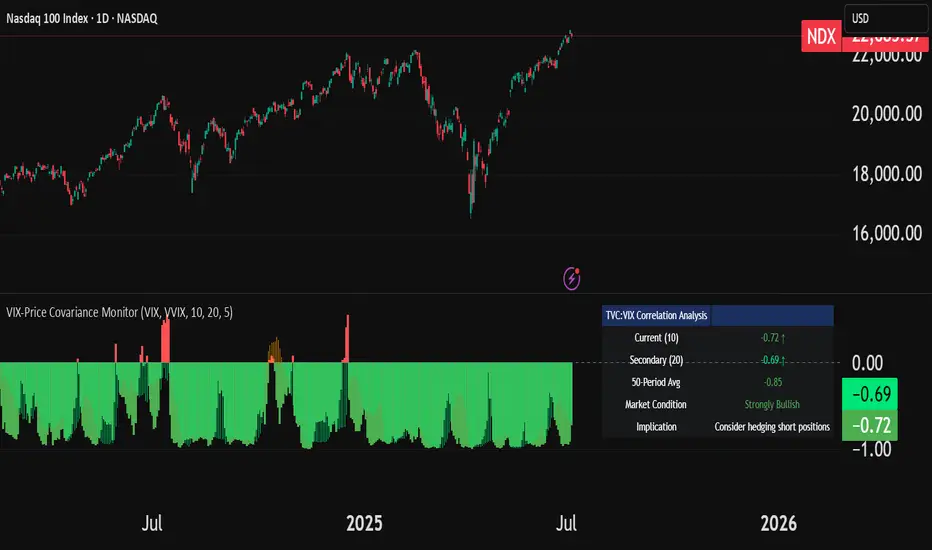 The VIX-Price Covariance Monitor is a statistical tool that measures the evolving relationship between a security's price and volatility indices such as the VIX (or VVIX).