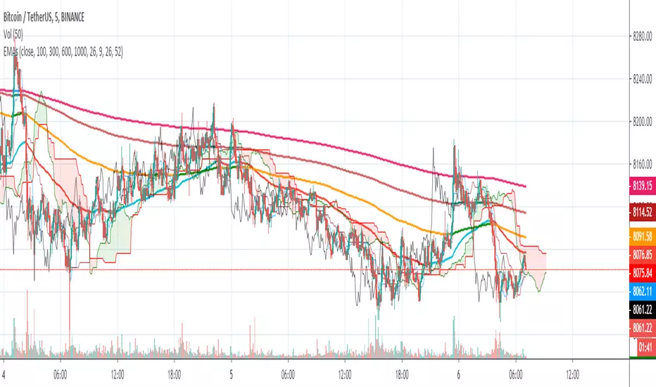 4 EMAs With Colors(100,300,600,1000)+ichimoku Cloud