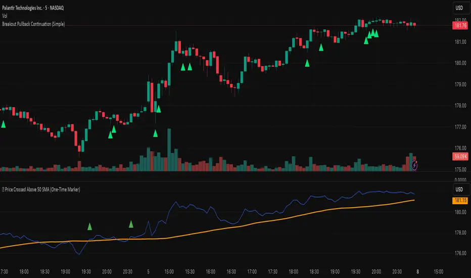 ð Price Crossed Above 50 SMA (One-Time Marker)