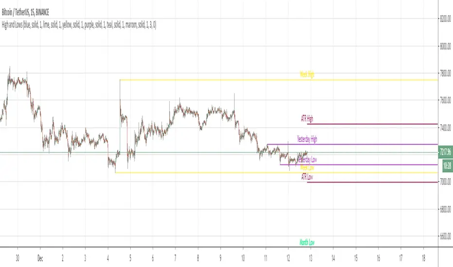 Script is showing previous year, month and day high and low, plus ATR range from the open price on the current day.