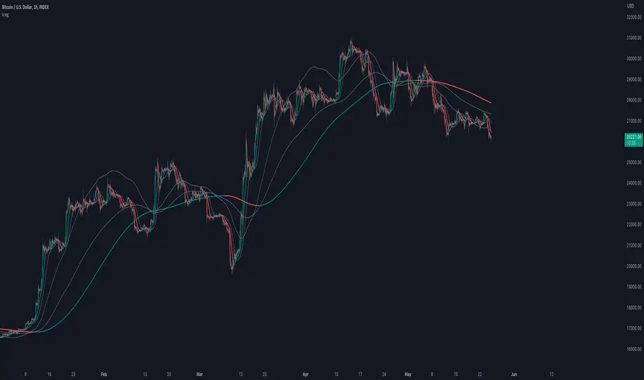 This toolkit provides filters and extra functionality for non-repainting Nadaraya-Watson estimator implementations made by @jdehorty. For the sake of ease I have nicknamed it "kreg". Filters include a smoothing formula and zero lag formula. The purpose of this script is to help traders test, experiment and develop different regression lines. Regression lines are best used as trend lines and can be an invaluable asset for quickly locating first pullbacks and breaks of trends.