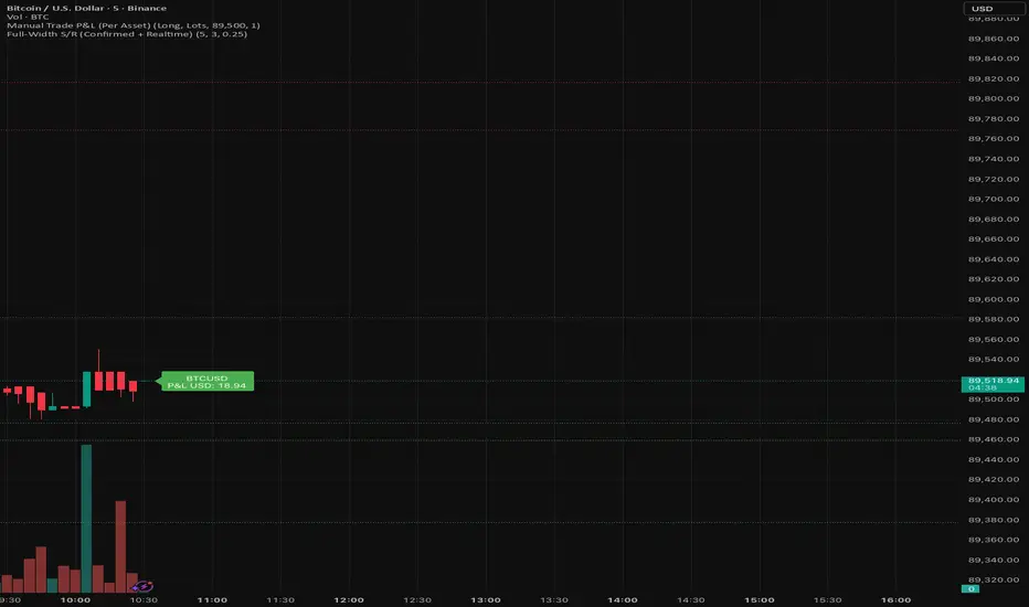 Enter your USD position size, direction and entry price to track it realtime in the chart without needing to use TV brokers for it.