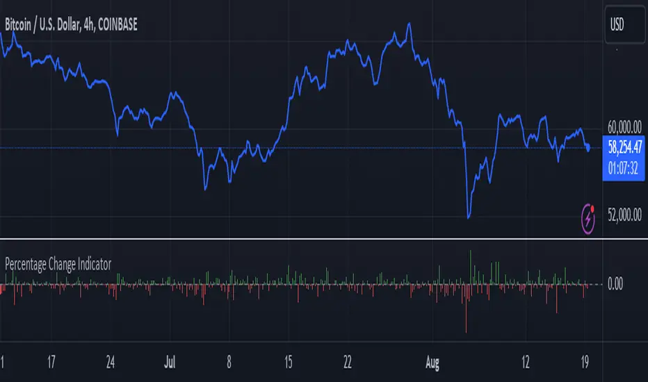 This indicator calculates and displays the percentage change between the current close price and the previous close price. It provides a clear visual representation of price movements, helping traders quickly identify significant changes in the market.