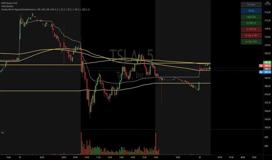 Intraday MAs for Regular/Extended Session