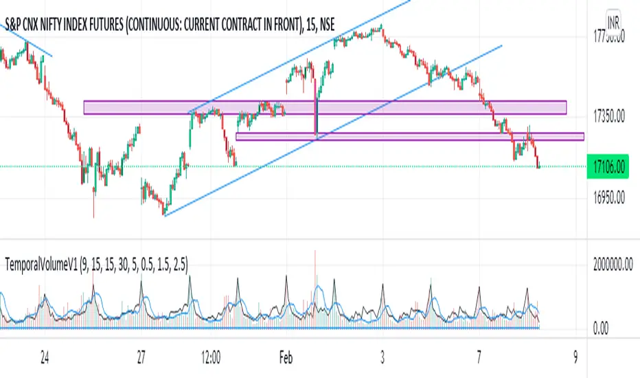 We usually see volume with respect of the last x bars. With this we can see volume in respect to time. For example, we can compare the first hour volumes with the last x days first hour volumes! Just the session start and session end.