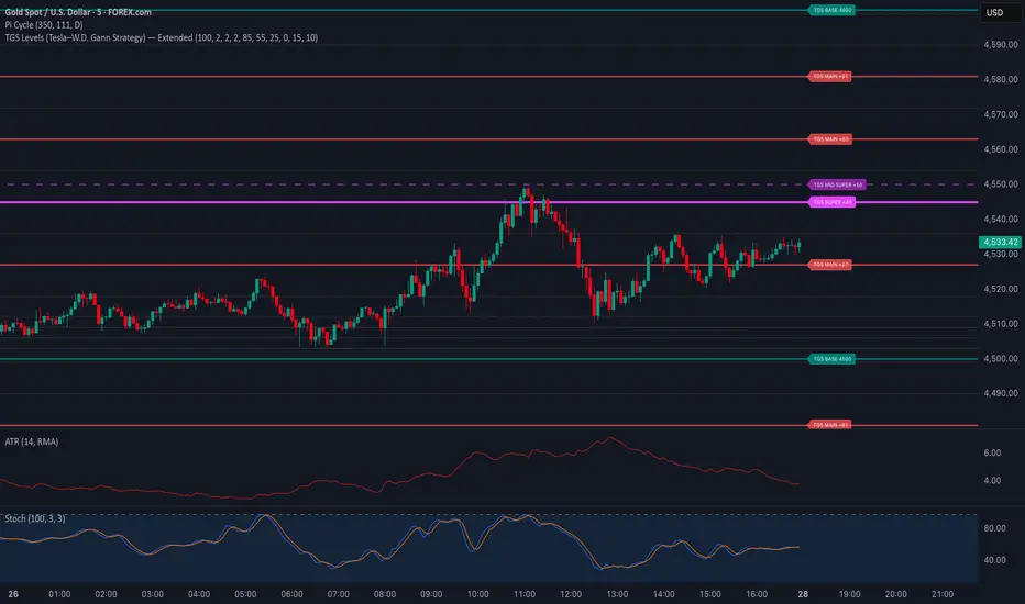 TGS Levels is a price-geometry indicator designed to map algorithmic decision zones on the chart using principles inspired by W.D. Gann price geometry and Tesla 3-6-9 harmonic structure.