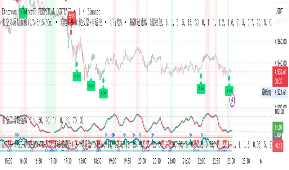 ANRF++(RSI+MACD+OBV+VR+CCL 自适应融合)· 不重绘