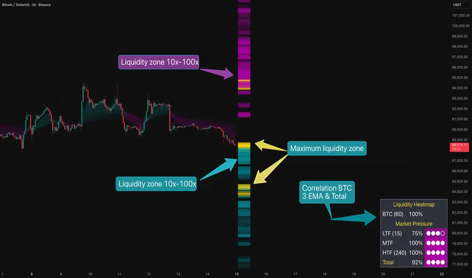🟣 Liquidity Gradient Heatmap: Our unique algorithm visualizes the "density" of resting orders.