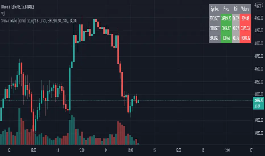 Simple Example Table for Displaying Price, RSI, Volume of multiple Tickers on selected Timeframe