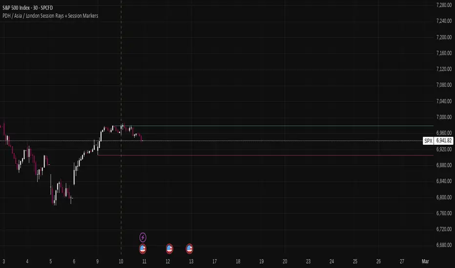 PDH / Asia / London Session Rays + Session Markers