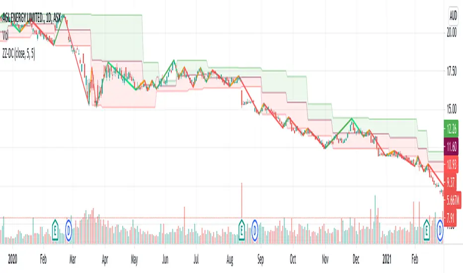 Parameter HighLowLength refers to number of zigzag lines back which can be used to calculate top and bottom of donchian channel.