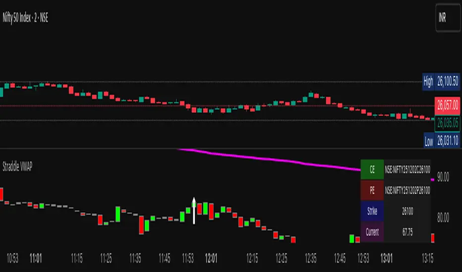 Plots a straddle candle stick chart with opening price and vwap . Please z score and break down signals