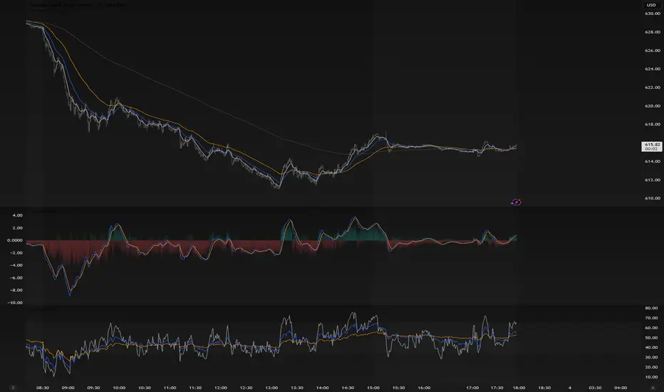 My EMA setup uses a stacked configuration of 8 / 21 / 55 / 244 periods, designed to capture short-, medium-, and long-term market trends simultaneously. This multi-layered approach provides clear visual cues for trend direction, support and resistance levels, and dynamic market momentum. I also have the option to overlay an anchored VWAP on an as-needed basis, which adds a context-specific reference point for price action, enhancing trade precision and decision-making. The combination of stacked EMAs and optional VWAP allows for both trend-following strategies and more tactical, volatility-aware entries and exits.