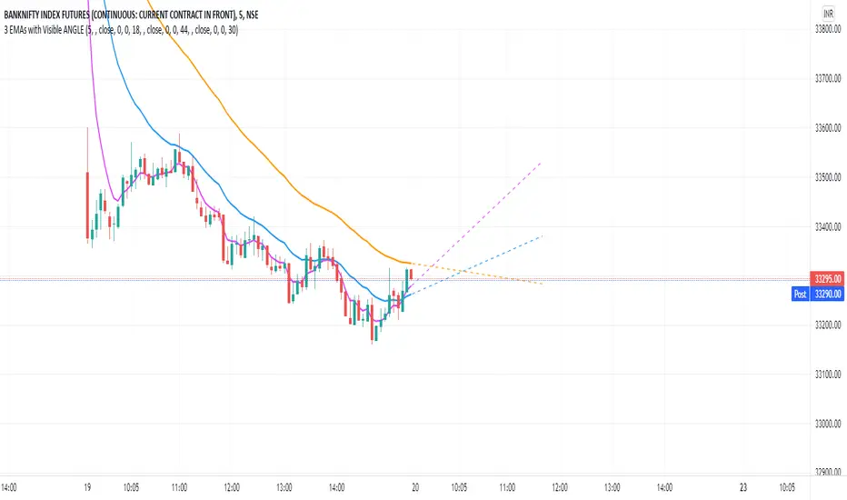 Hello Friends, I observed that on lower timeframes, traders find it hard to visualize the angle of Multi plotted EMAs due to fast moving value. To overcome the problem, EMA’s emerging angles have been plotted on the chart by extending the lines to defined points. Further, MTF, Source, Offset points, Deviation by %, Plotting on/off, Repainting on/off, Extension Line on/off options have also been included in the script.