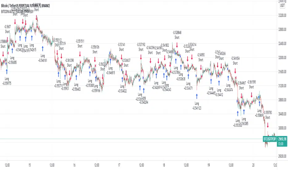 This strategy shows buy and sell signal. Designed and optimized only for Bitcoin. You can use it spot or futures markets and 30 minutes time frame. Indicator gives trade points when optimized sma trending but filtered choppinnes index. Profit factor over 3 for all time backtest period. Care using when you set leverage. I recommend maximum 5x leverage for auto trading.