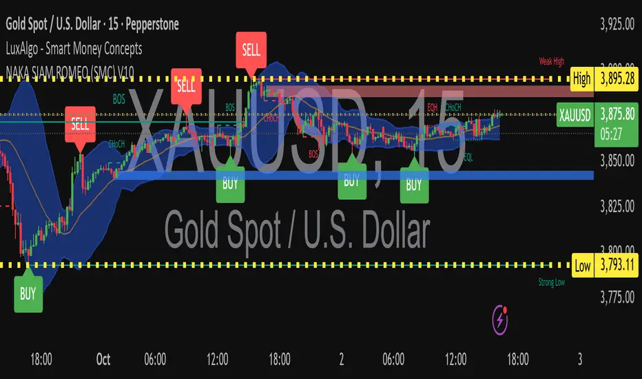 The Naka Siam Romeo indicator is designed based on Smart Money Concepts (SMC) combined with Bollinger Bands (BB).