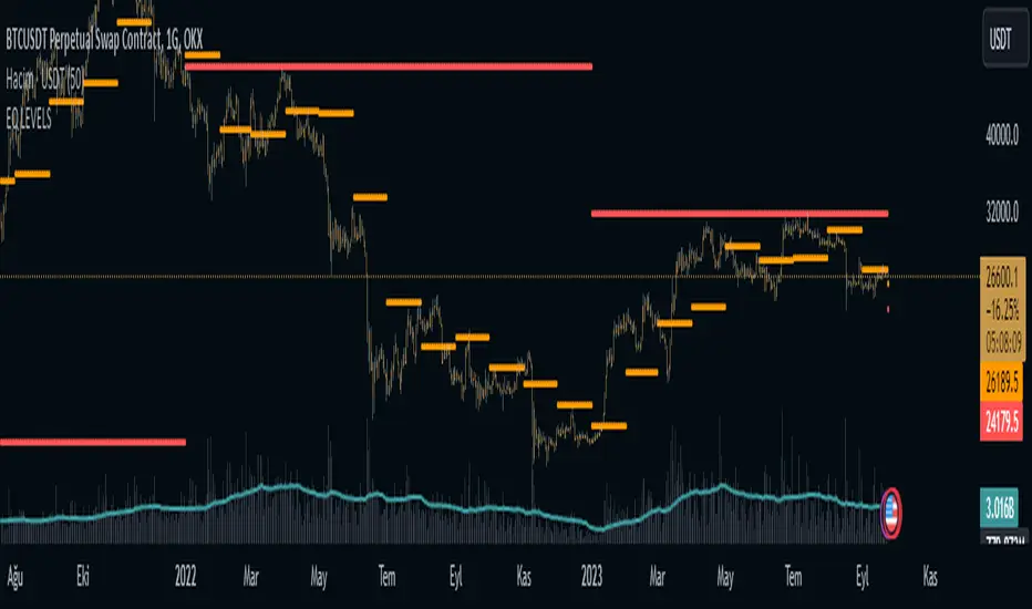 I have added 4 timeframes for both long-term investors and traders to use. If you want to use which timeframe, you can select the timeframe you want from the settings and see it on the chart. For those who want to trade, my suggestion is to follow the daily eq levels and of course look at the weekly eq levels. The weekly eq level can give you an idea of what kind of price range the next day may be in.