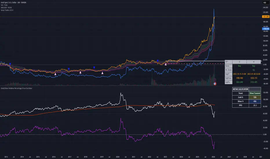 Gold/Silver Relative Percentage Price Oscillator - by Saras Trader, Strategic Allocation & Trend Model (Not a buy/sell signal indicator)