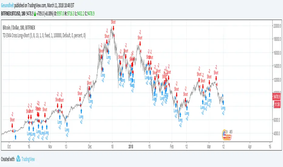 Buys when two fast EMA's have crossed above a slower EMA, sells when the two fast EMA's cross back under.