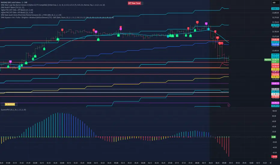 This indicator provides a fixed multi-timeframe EMA structure designed specifically for traders executing on lower timeframes (5–15 minute charts) who need consistent higher-timeframe context without constantly switching charts.