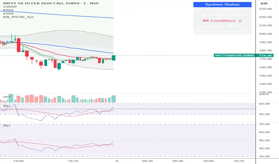 The condition is : Draw a buy signal on the price chart when price crosses and closes above the lower bollinger band from below and the 14 sma crosses the rsi (30) from below.
