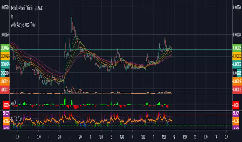 5 x Moving Averages that will show you trend bias for a coin ( green bull / yellow undecides / red bearish )