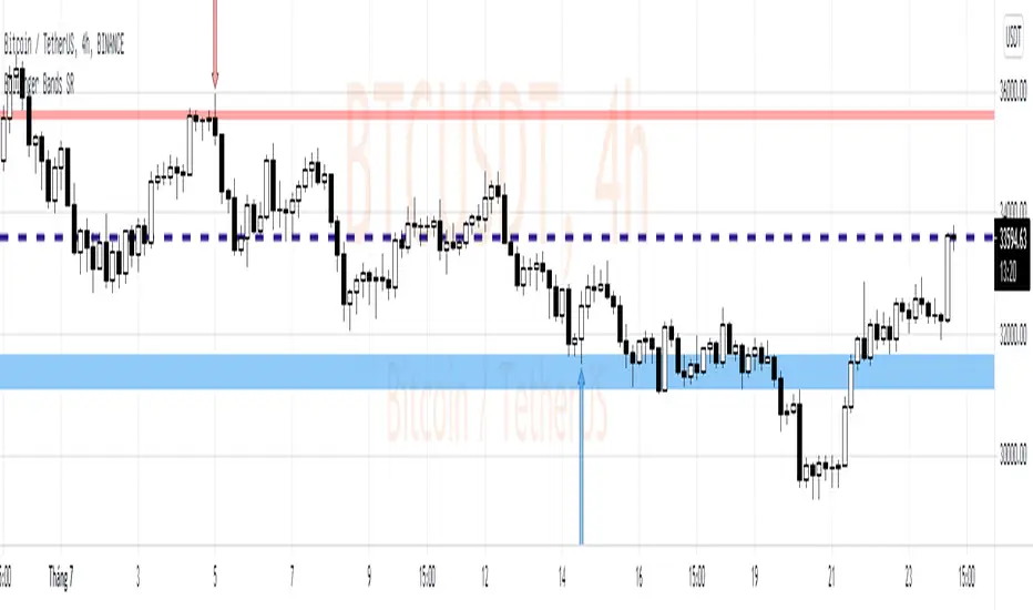 This simple script base on Bollinger Bands to defined Support and Resistance and marked Bar False broken SR by Reversal Arrow. Detail of rule as below: