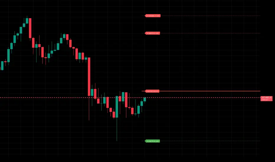This indicator automatically detects, tracks, and updates strong support and resistance levels using pivot points, level clustering, touch-reaction logic, and strength scoring.