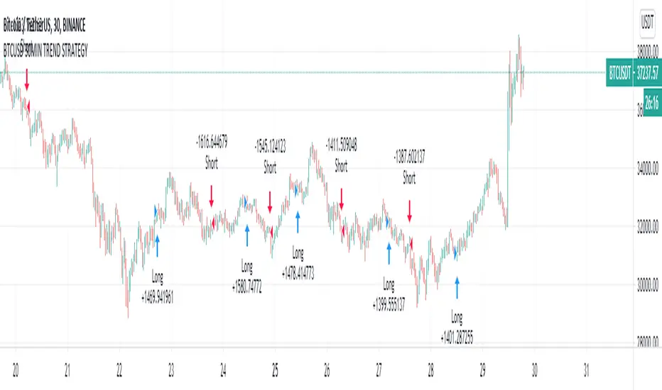 This strategy signals is based on the market close price and calculate for buy and sell signals. it uses composite technical algorithm to filter out the best buying and selling points.This indicator should be used to see trend, range zones, evaluate the best areas to enter the market, use only 30 MINUTES and BTCUSD and only bitcoin derivatives BTCUSDT perpetual or inverse etc. Can use spot or future markets