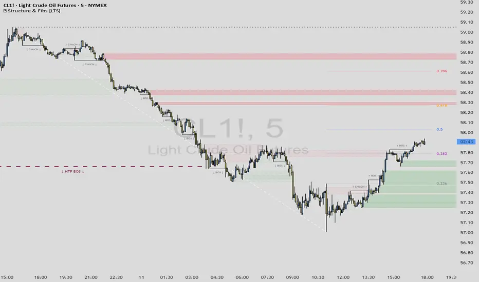 - Draws HTF BOS/CHoCH lines and labels back on the lower timeframe.