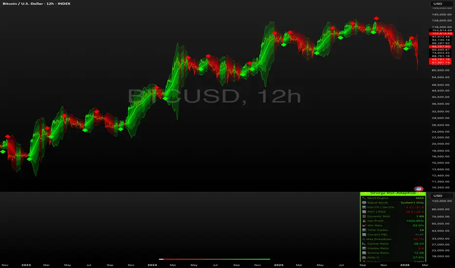 An adaptive trend-following indicator that combines RSI momentum with Median Absolute Deviation (MAD) volatility bands to identify trend direction, gauge regime strength, and generate entry/exit signals.
