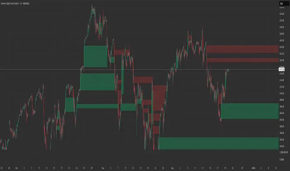 The "Repair" Algorithm: The script tracks the high and low of every active void. When price action fully traverses the coordinates of a void, the script "seals" the box, visually marking the moment of liquidity equilibrium.