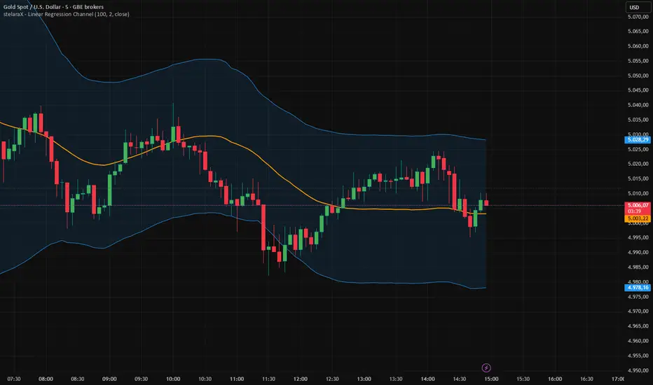 stelaraX – Linear Regression Channel is a statistical price channel designed to visualize trend direction, trend strength, and price deviation from a regression-based mean. By applying linear regression and standard deviation bands, it provides an objective framework for trend analysis and mean reversion.