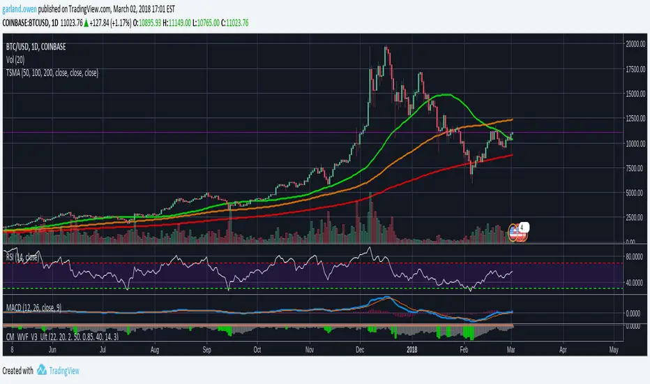 Based on AdventTrading's TEMA script, but using simple moving averages instead of exponential. Also changed the colours to be nicer.