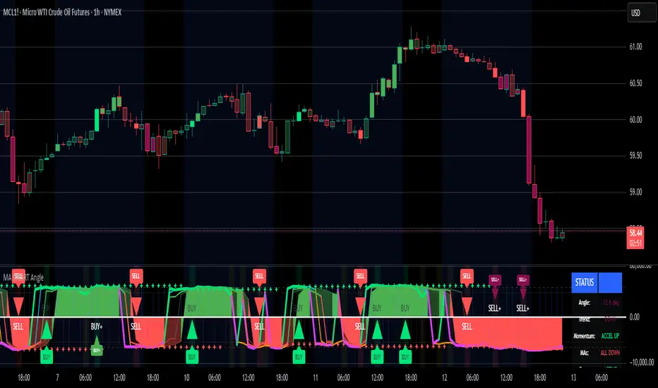 **Original Concept Credit:** This indicator builds upon the "MA Angles" concept originally created by **JD** (also known as Duyck). The core angle calculation methodology and Jurik Moving Average (JMA) implementation by **Everget** are preserved from the original open-source work. The angle calculation formula was contributed by **KyJ**. This enhanced version is published with respect to the open-source nature of the original indicator.