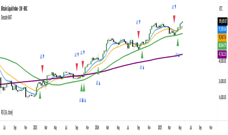 - Combine the Decode MAT with other indicators (like RSI, MACD, or volume analysis) to confirm signals and increase the probability of successful trades. For instance, a bullish MA crossover combined with an oversold RSI reading could strengthen a buy signal.