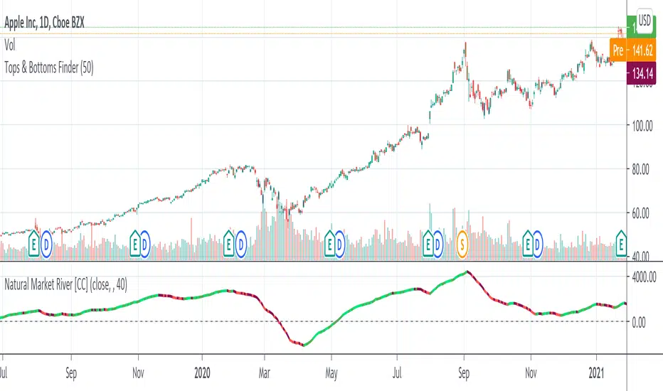 The Natural Market River was created by Jim Sloman (Ocean Theory pgs 59-62) and this is another momentum indicator that is extremely similar to the previous indicator I published, the Natural Market Mirror. This has almost identical buy and sell signals but different way to handle calculations so I'm going to leave it up to you which one you will prefer. Since this is almost identical, the buy and sell signals work in the same way with both strong signals and normal ones. Buy when the line turns green and sell when it turns red.