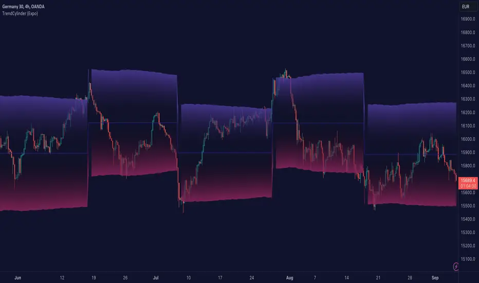 The TrendCylinder is a dynamic trading indicator designed to capture trends and volatility in an asset's price. It provides a visualization of the current trend direction and upper and lower bands that adapt to volatility changes. By using this indicator, traders can identify potential breakouts or support and resistance levels. While also gauging the volatility to generate trading ranges. The indicator is a comprehensive tool for traders navigating various market conditions by providing a sophisticated blend of trend-following and volatility-based metrics.