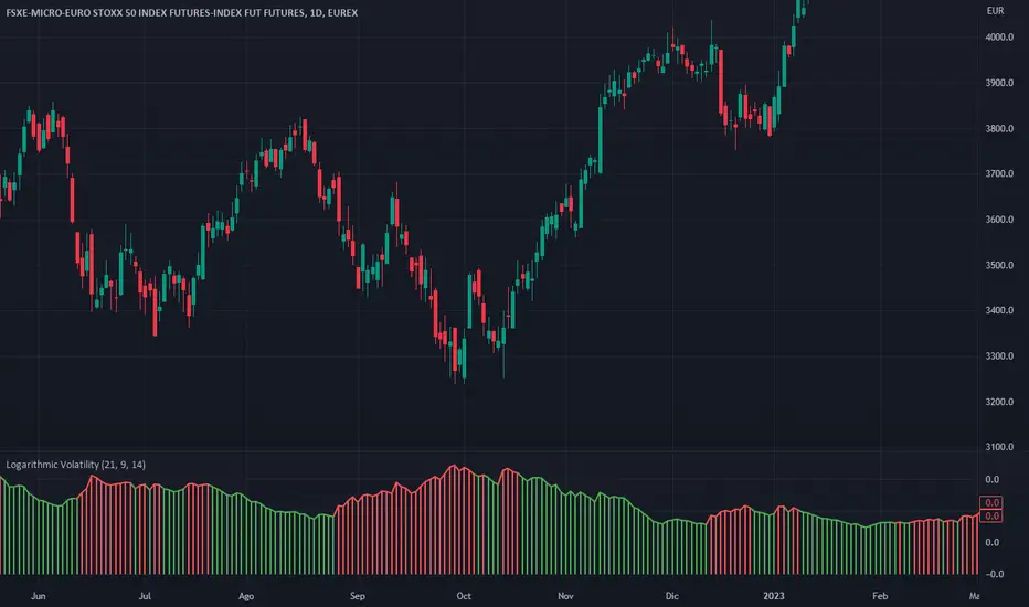 El Indicador de Volatilidad Logarítmica es un indicador de suavizado único que utiliza logaritmos y el cálculo de la volatilidad de los precios de apertura, máximo, mínimo y cierre. Combina estos elementos para obtener una representación precisa de la volatilidad del mercado en situaciones donde la volatilidad es baja.