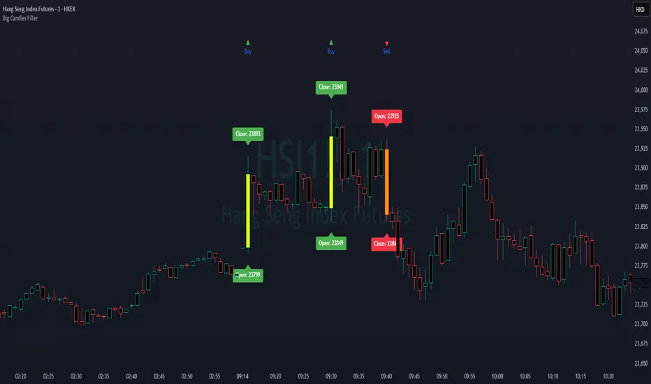 The bars are colored for big candles, and optional labels show the open and close prices.