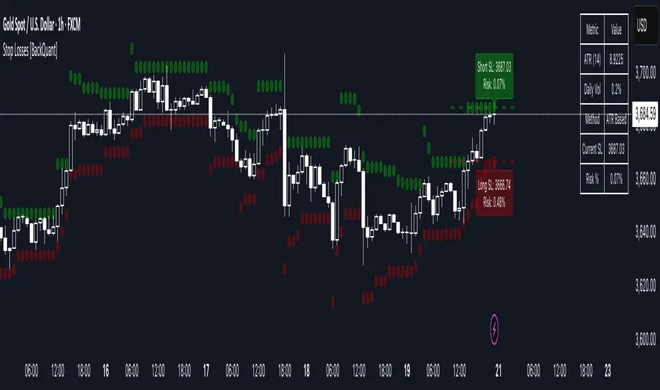 - Table: ATR value, Daily Vol %, your chosen Method, the Current SL, and Risk %—all in one compact block that you can pin top-left/right/center.