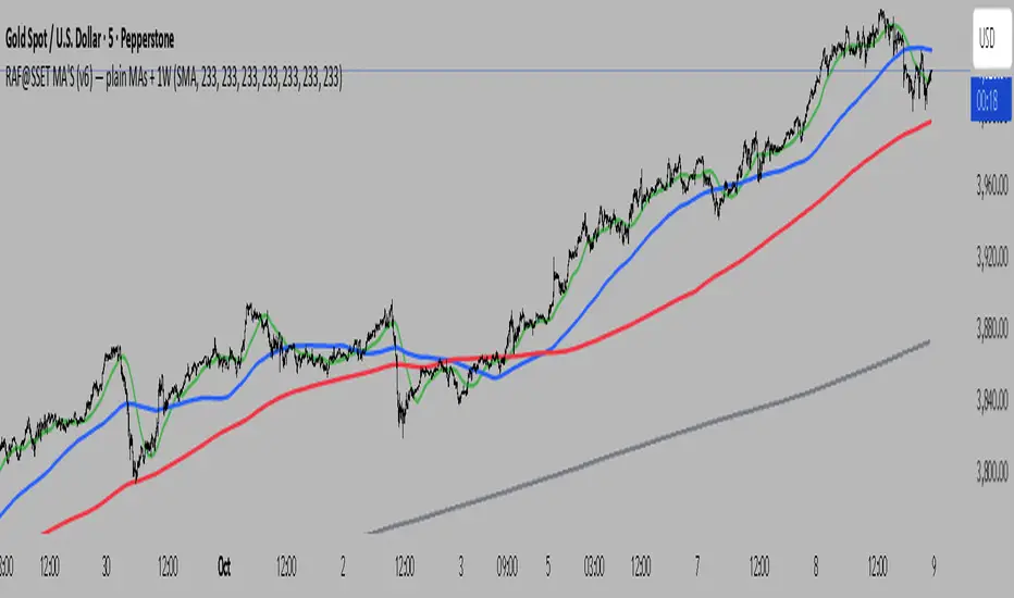 v1.0: First public release (Pine v6). Seven MAs (1m→1W), confirmed HTFs, fixed colors, SMA/EMA toggle.