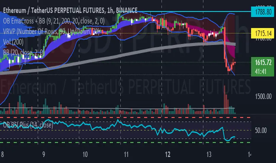 It is based in an EMA cross ( 9 x 21) and the Bollinger Bands without the central Moving Average.