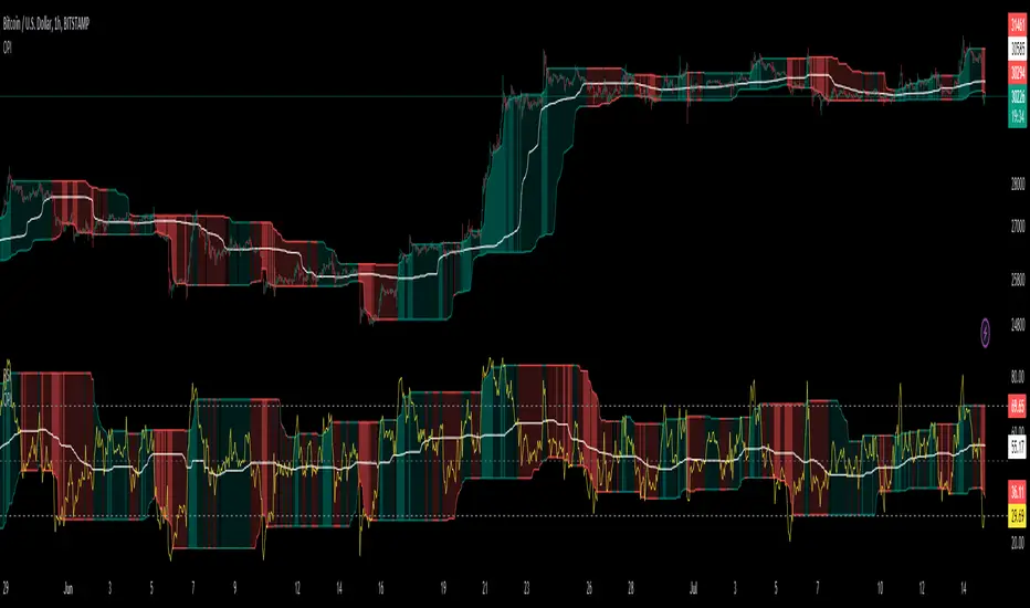 The Oscillator Profile Indicator (OPI) is designed to provide insights into market trends and potential reversal points by profiling the value distribution of an oscillator or the price chart over a specified lookback period.