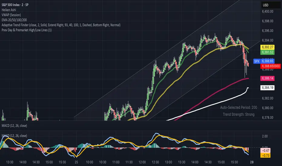 This TradingView Pine Script is designed to enhance intraday trading by visually marking key price levels on the chart. It automatically plots horizontal lines representing the previous day's high and low, as well as the pre-market session's high and low. These levels are critical for identifying support and resistance zones that traders often use for entries, exits, or to anticipate price reactions.