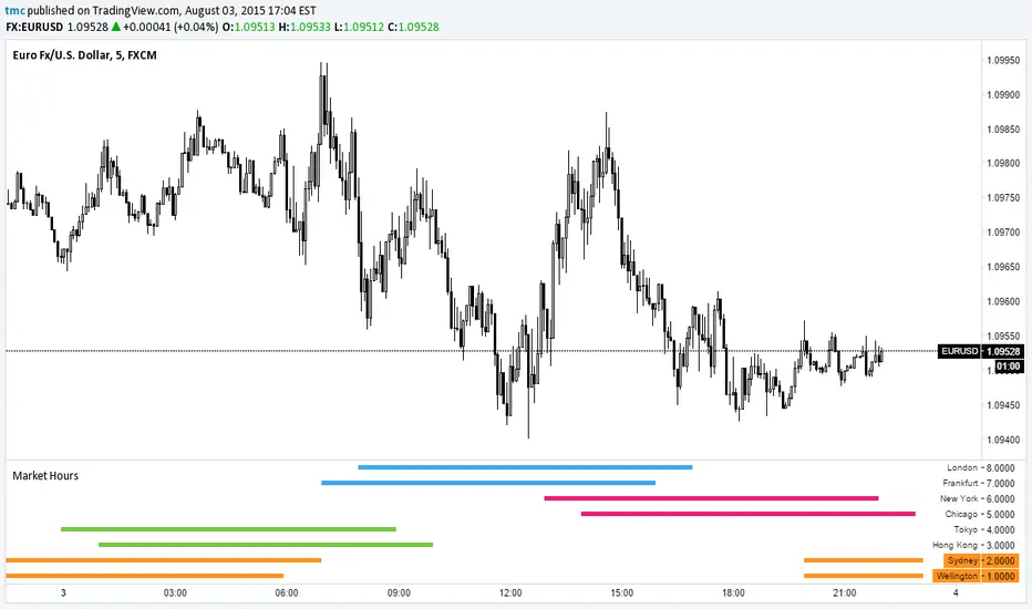 - Market Hours plot one hour ahead so you can easily see when markets open or close.