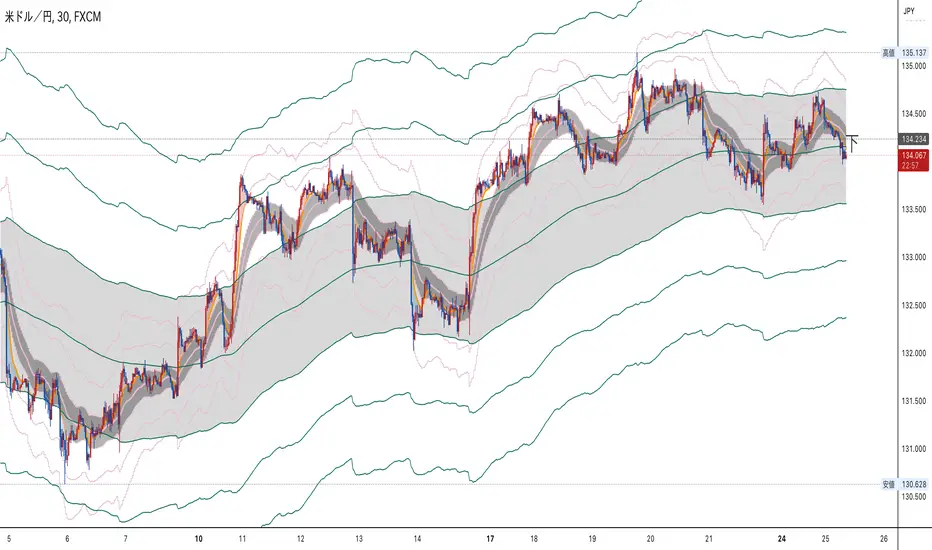 このエンベロープは直近のボラティリティーをATRによってバンド幅に反映させる、「オートバンド調整機能」を搭載しています。
